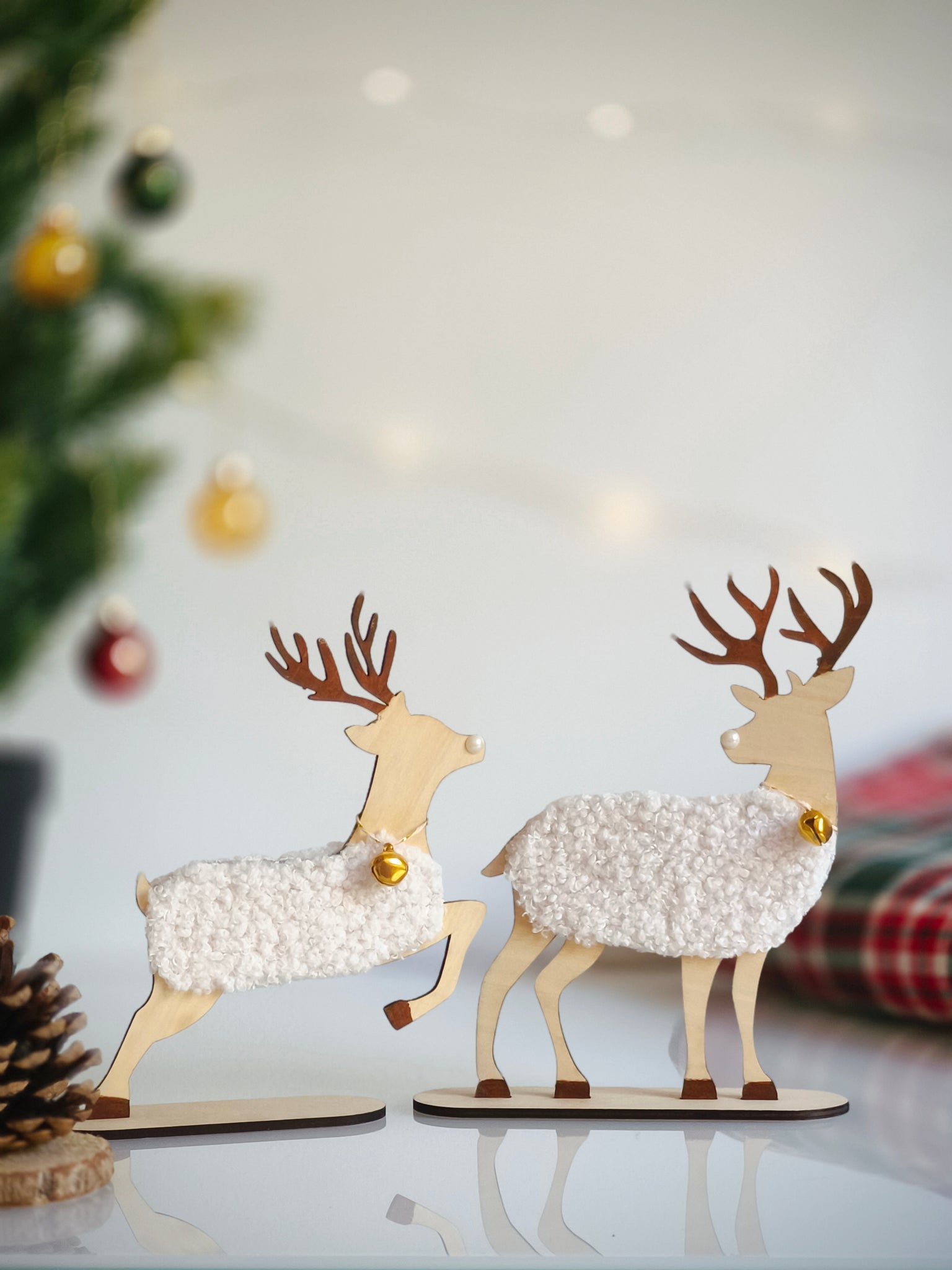 🌲 2 rennes en bois de contreplaqué, avec leur support