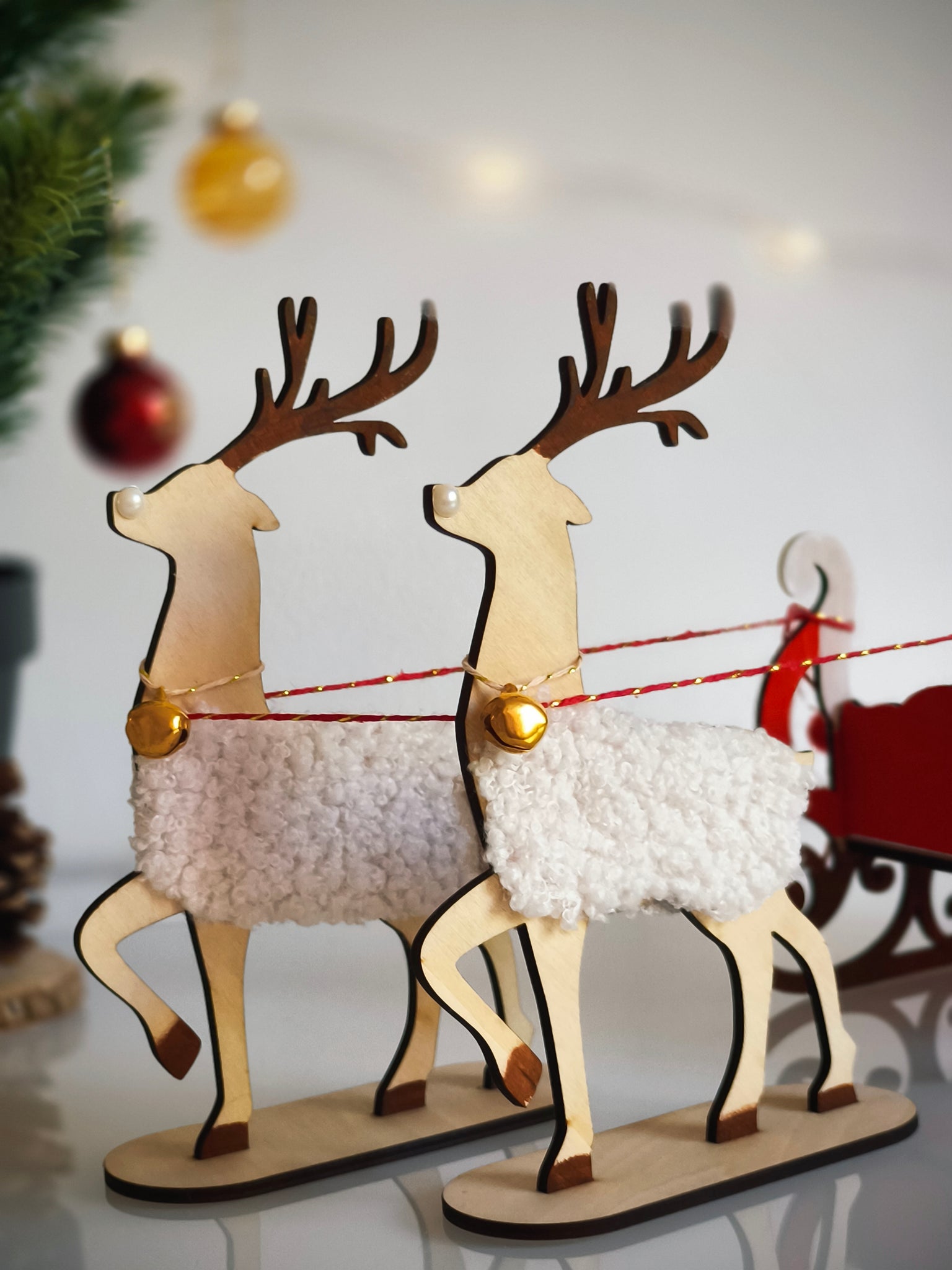 🦌 2 rennes en bois de contreplaqué, avec leur support