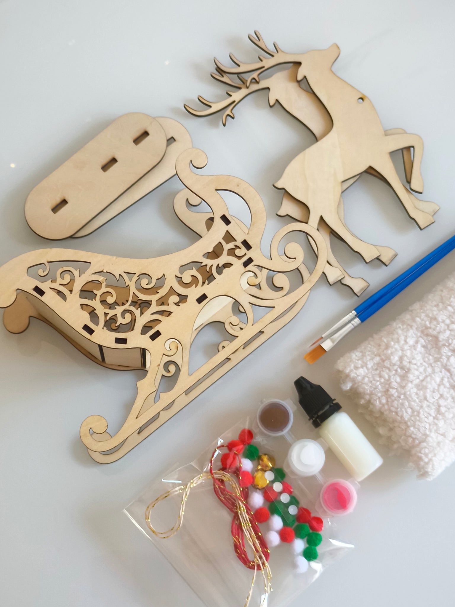 Apportez une touche unique à vos décorations de fêtes avec ce kit pour peindre et décorer le traineau du père noël et ses 2 rennes ! Ce coffret créatif complet, est parfait pour les enfants comme pour les adultes qui souhaitent vivre un moment de partage et de création en attendant les fêtes de Noël.