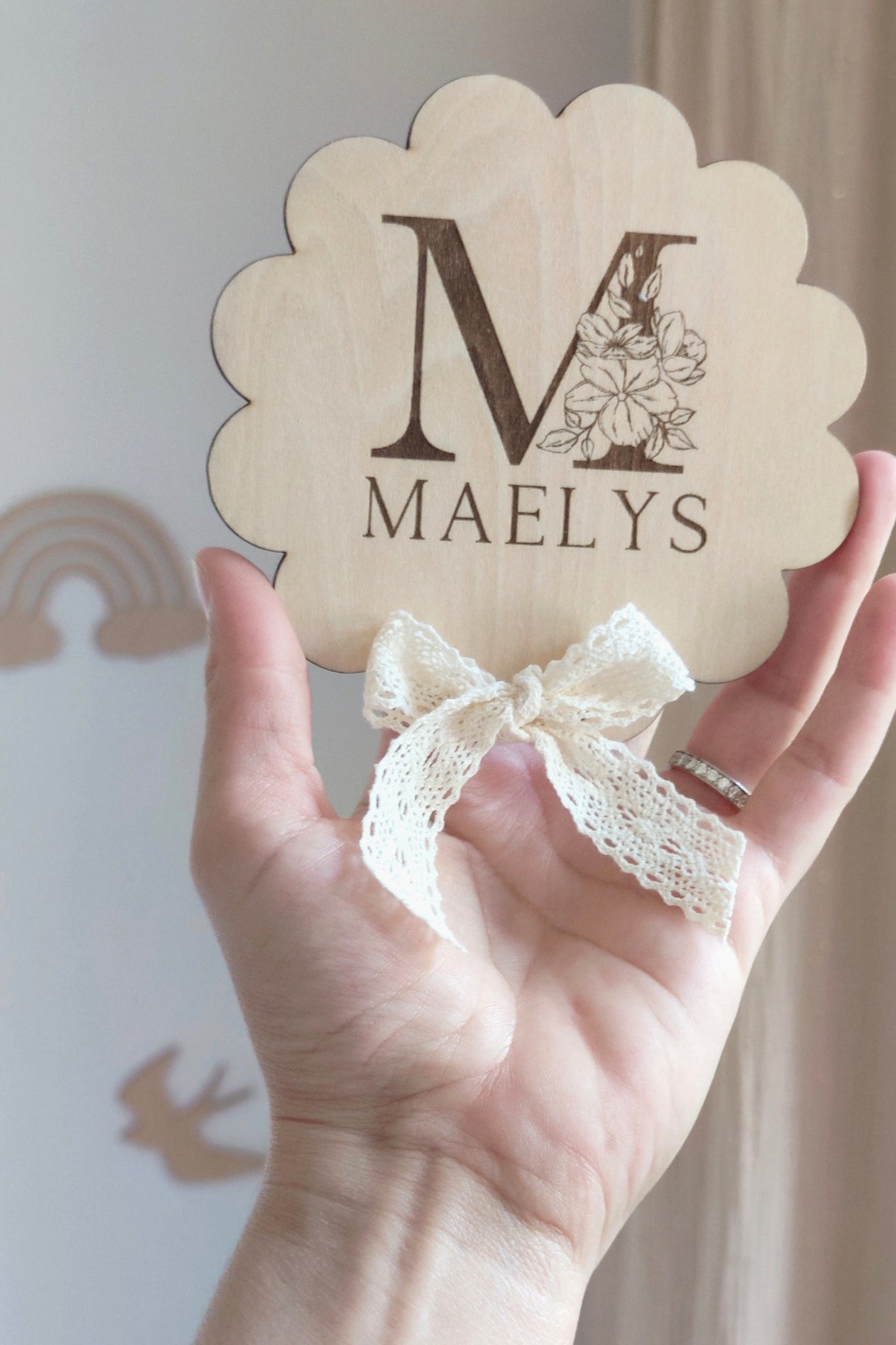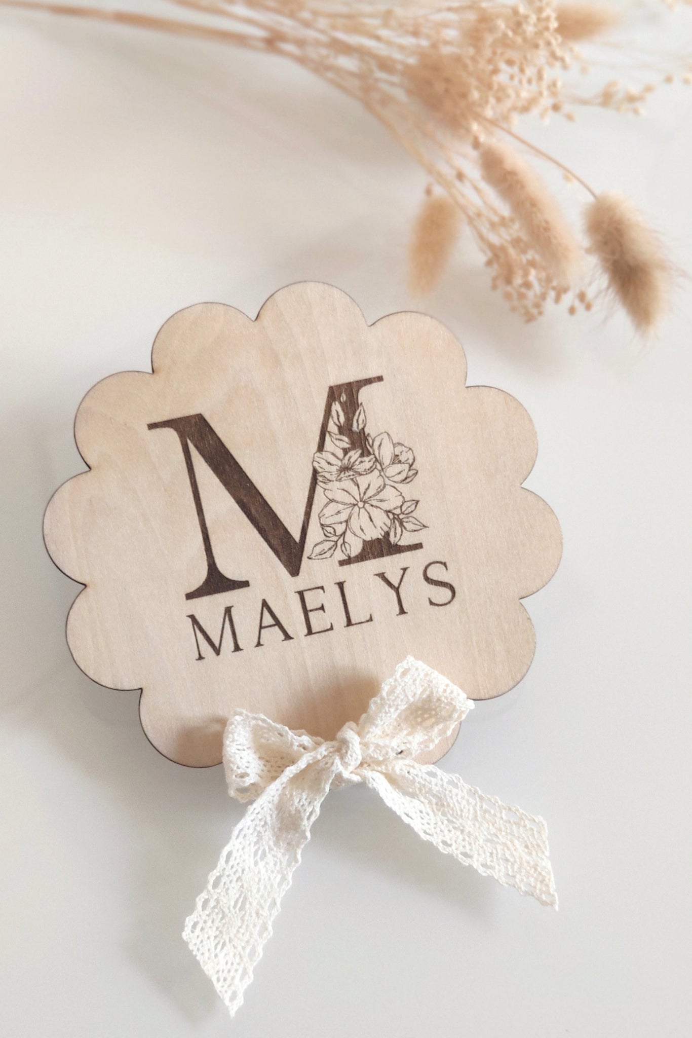 Cette carte en bois est personnalisable avec le prénom de votre enfant (veuillez noter le prénom dans l'encart prévu à cet effet)